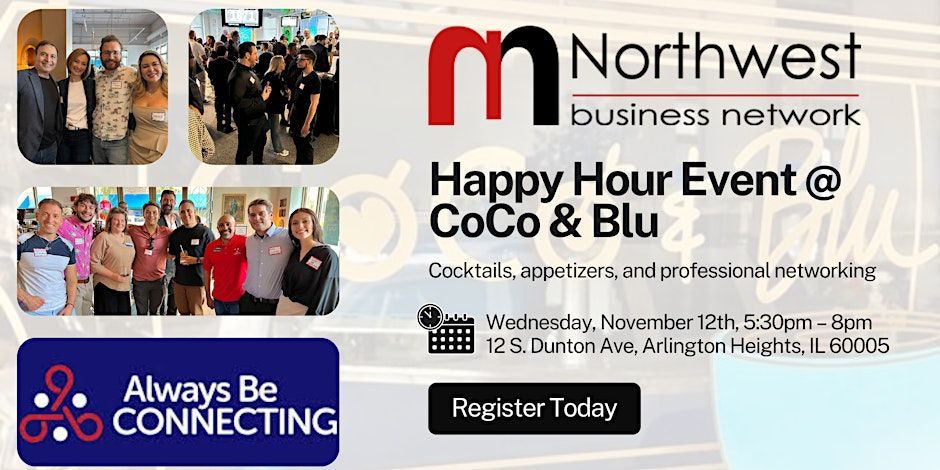 You'll get to participate in a casual event with natural networking, making connections that are not forced, but organic. What better way to network than at CoCo & Blu in Arlington Heights with some of their delicious cocktails and appetizers!