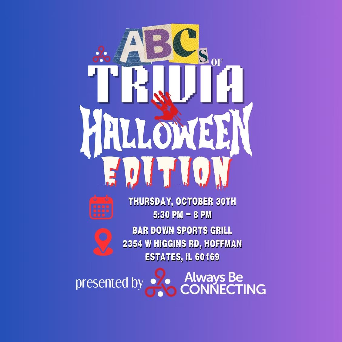 Get ready for a frightfully fun night of trivia! The ABC’s of Trivia: Halloween Edition marks the final showdown in our 2025 trivia series—and we’re going out with a bang (and maybe a broomstick).